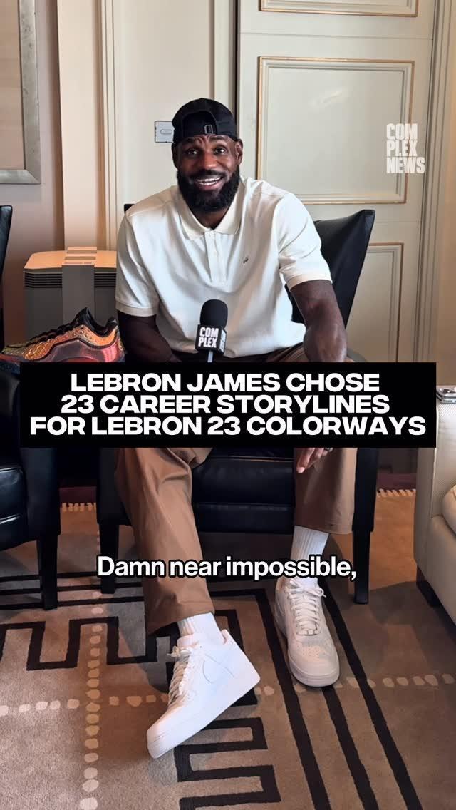 当被问到如何从自己的生涯中选出23个代表性故事,詹姆斯说:“几乎不可能做到。有一些没入选,我们也就不会涉及。但是那些入选的故事都有理由。我对此非常兴奋,当然人们看到了那些配色,我们打造每一款球鞋的细微差别。但我对每一款球鞋在发布时所包含的故事更为期待。